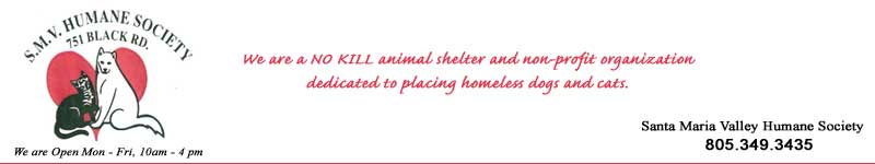 The mission of the Santa Maria Valley Humane Society is to further the interests and improve the lives of dogs and cats by educating and influencing public opinion with respect to the care, treatment and welfare of animals; to provide shelter, food, and medical care for those dogs and cats surrendered to us for adoption and to find appropriate homes for them; to offer informational programs in the community’s elementary schools; to operate a low cost spay and neuter clinic offered to the public; and to take and active part in the enforcement of those laws of the State of California enacted for the prevention of cruelty to animals. |