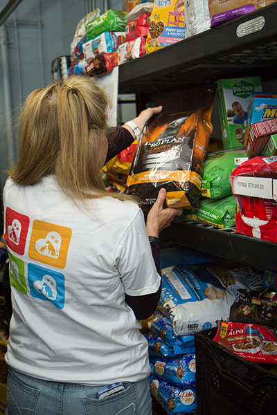This program is 100% supported through donations of pet food provided by private individuals and local retailers and is subject to the availability of donated food. All brands of dry and canned dog and cat food are gratefully accepted. If you are able to donate a bag or a few cans of pet food, know that it will go to help someone in our very own community.