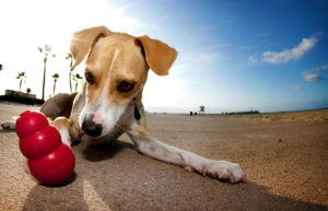 Get your dog excited about their new KONG. Show it off and talk about it excitedly; maybe even play a little hard-to-get to pique their interest and show them what their new toy can do.